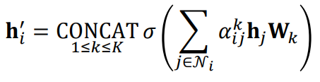 $ e_{ij} = a^T[CONCAT(\tilde{h_i},\tilde{h_j})] $