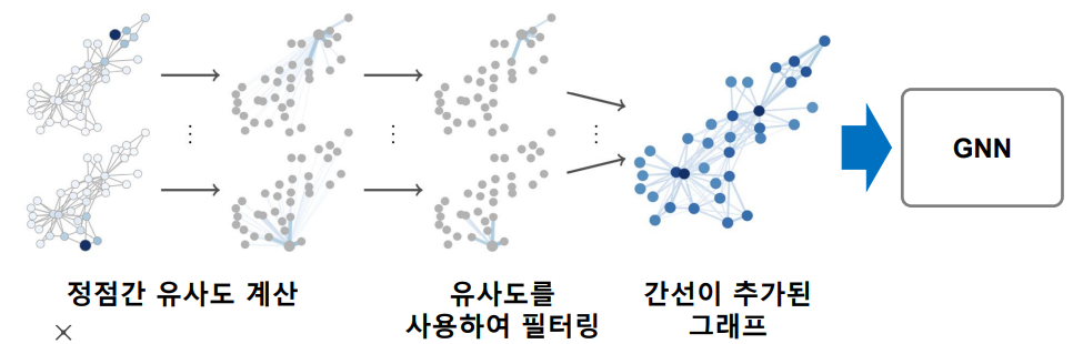 데이터 증강(Data Augmentation)은 다양한 기계학습 문제에서 효과적이다 23 그래프에도 누락되거나 부정확한 간선이 있을 수 있고, 데이터 증강을 통해 보완할 수 있다 임의 보행을 통해 정점간 유사도를 계산하고, 유사도가 높은 정점 간의 간선을 추가하는 방법이 제안되었다.